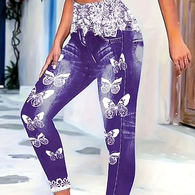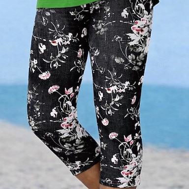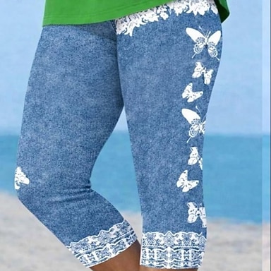 Per donna Pantaloni capri Leggings Vacanza Moda Hawaiano Capri Misura del girovita medio Floreale Grafico Stampa Comodità Morbido Traspirante Elasticizzato Casuale Quotidiano Vacanza Blu Estate