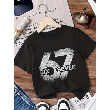 Cotone Bambini Ragazzi Nero Grafico Gergo divertente 67 Maglietta Blusa Girocollo Manica Corta All'aperto Abbigliamento Quotidiano Moda Streetwear Designer Stampa Estate