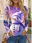 Natale Per donna Maglietta Grafico Pupazzo di neve Vintage Moda Elegante Manica Lunga Girocollo Top Regolari Quotidiano Weekend Stampato Rosa Viola Verde Estate Primavera Autunno Inverno