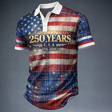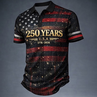 4 luglio 2026 250° Per uomo Bandiera Americana Veterani Polo Maglia da golf Manica Corta Magliette polo Camicie con Colletto Abbigliamento casual alla moda Abbigliamento da vacanza Abiti da festa