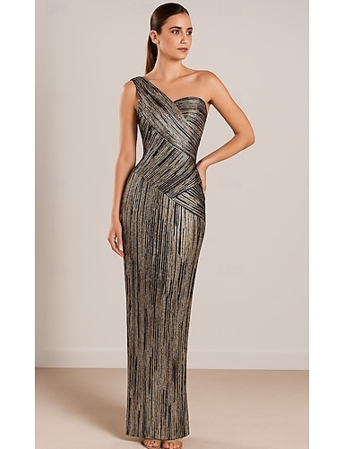Tubino Colonna Lunghezza al pavimento Abiti da Ballo Abito da Sera Da principessa Abito formale Elegante Senza Maniche Monospalla Matrimonio Formale Con Paillettes con Glitter
