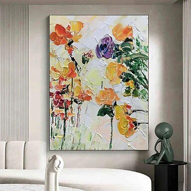 dipinto a olio originale fatto a mano con fiori su tela dipinto astratto con piante per la decorazione domestica con cornice allungata/senza cornice interna