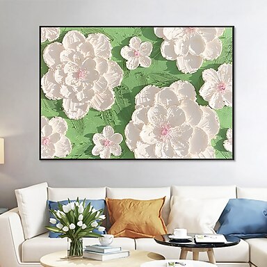 pittura a olio fatta a mano su tela decorazione della parete di arte originale bellissimi fiori bianchi pittura astratta pittura floreale per la decorazione domestica con cornice allungata/senza