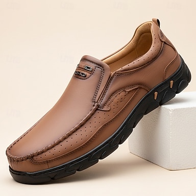 Mocassini casual da uomo marroni, senza lacci, con suola robusta antiscivolo, comode scarpe da passeggio per esterni, ideali per uomini di mezza età e anziani, perfette per l'uso quotidiano, i viaggi, la guida e il tempo libero del fine settimana.