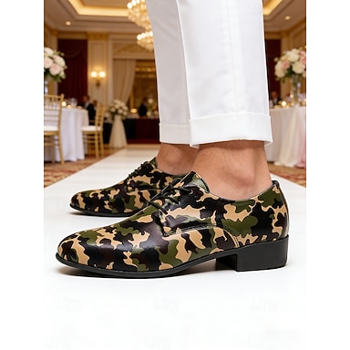 scarpe oxford da uomo in similpelle con stampa mimetica, moda casual con lacci per street style, festival musicali, abbigliamento quotidiano e matrimoni