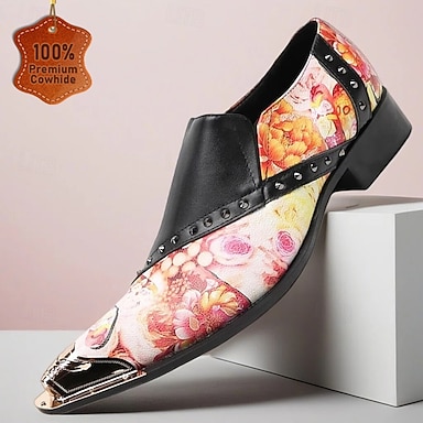 mocassini slip-on da uomo con motivo floreale, design alla moda unico, comode scarpe casual per feste e occasioni speciali