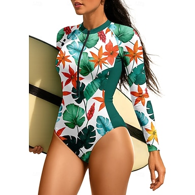 Per donna Standard Top sottomuta Rash Guard completo per il corpo Costume da surf intero Floreale Tropicale Con zip con reggiseno incorporato Cerniera Frontale Protezione Solare UV Coppa larga UPF50+