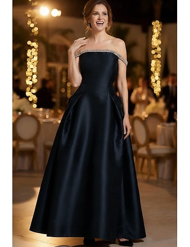 Linea ad A Lunghezza al pavimento Abito da Sera Da principessa Abito formale Elegante Senza Maniche Senza Spalle Festa serale Matrimonio Raso con Strass