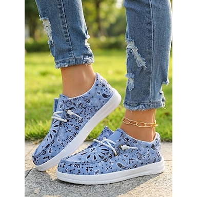 scarpe da donna in tela leggera blu - scarpe da passeggio con motivo floreale paisley e suola pieghevole per viaggi estivi, passeggiate e abbigliamento casual quotidiano
