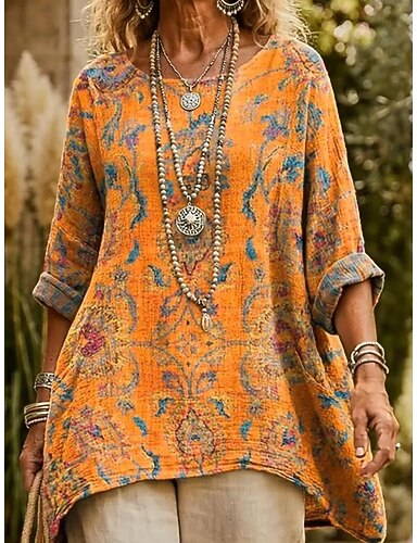 Per donna Blusa Stampato Floreale Grafico Bohemien Quotidiano Etnico Manica 3/4 Girocollo Scollo a Barca Top lunghi Quotidiano Ferie Abbigliamento da vacanza Arancione Estate Primavera