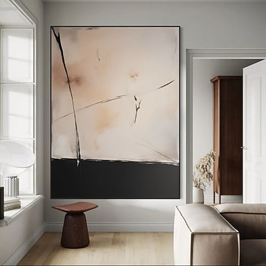 arte murale boho beige e nera, dipinto astratto nero, arte murale wabi sabi beige, dipinto su tela neutro, decorazione murale moderna e minimalista per soggiorno.