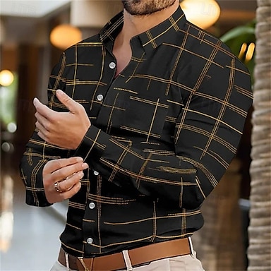 Per uomo Geometrico Blocco di colori Griglia / Plaid Camicia Camicia in raso Camicia elegante Manica Lunga Moda Casual Vacanza Abbigliamento Quotidiano Estate Primavera Autunno Collo ripiegato Stampa