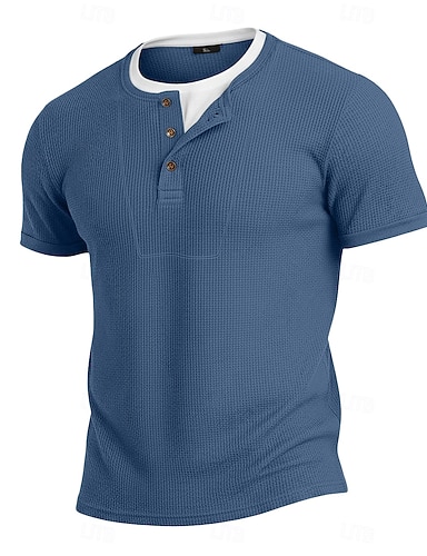 Per uomo Maglia Henley a nido d'ape Maglietta Maglietta in misto cotone Manica Corta Girocollo Henley Estate Primavera Tutte le stagioni Blocco di colori Semplice Testurizzato Moda Designer Casual