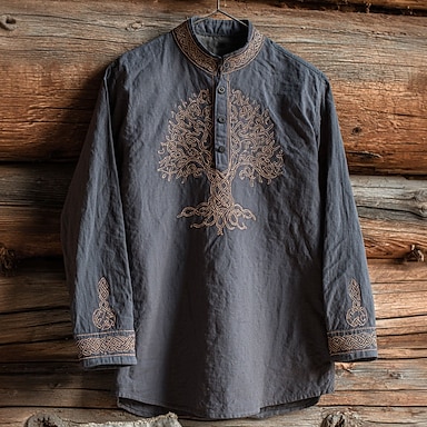 Per uomo Albero della vita Camicia Maglia Henley Camicia con colletto alla coreana Manica Lunga Vintage Retrò Vacanza Casuale Estate Primavera Mandarino Bottoni Camicia tipo lino Viola Marrone Verde