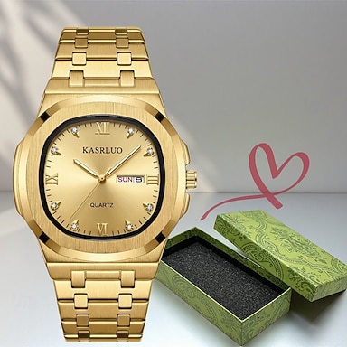 Orologio da uomo di lusso in oro, orologio da polso al quarzo per affari con datario, orologio analogico in acciaio inossidabile color oro con numeri romani e confezione regalo, impermeabile, regalo