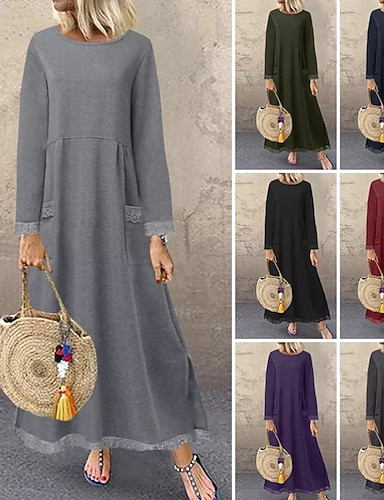 Per donna Abito maxi Abito aderente e svasato Vacanza Casual Boho Quotidiano Feste Uscire Vestibilità regolare Floreale Grafico A Pois Manica Lunga Girocollo Blu Nero Marrone chiaro Viola Autunno