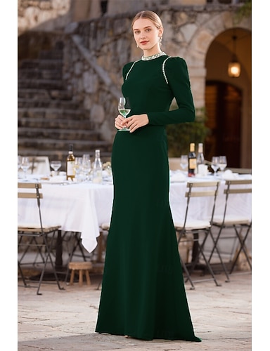 Abiti Formali Floor Length Sheath Column Abito da Sera Abito da Sera Elegante Vintage Maniche Lunghe Collo a Giro Festa di Halloween con Perline