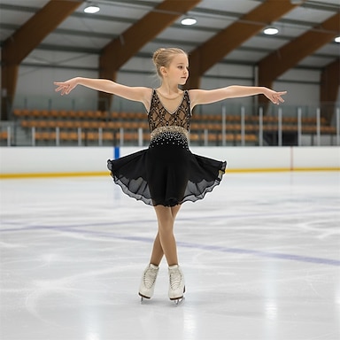 Vestito da pattinaggio artistico Per donna Da ragazza Pattinaggio sul ghiaccio Vestiti Nero Retato Elastene Elasticizzato Addestramento Da allenamento Professionale Vestiti da pattinaggio sul ghiaccio