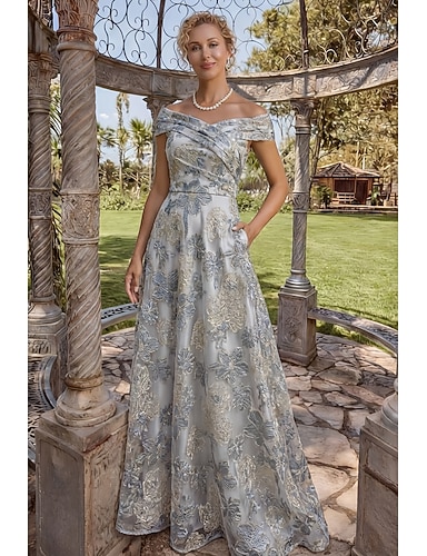 Linea ad A Lunghezza al pavimento Abito da invitata a nozze Abito Formale Abito Floreale Abito da cerimonia per signora Senza Maniche Senza Spalle Elegante Formale Jacquard con Ricamo