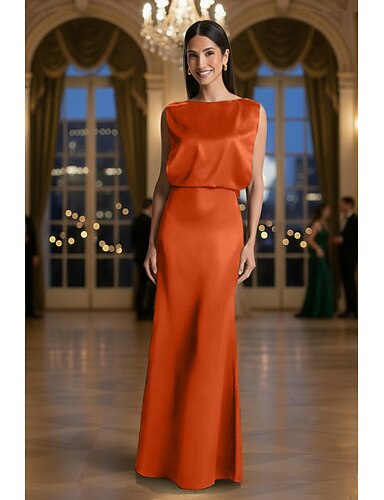 Tubino Colonna Lunghezza al pavimento Abito da Ballo Abito da invitata a nozze Abito da sera Abiti da Ballo Elegante Senza Maniche Girocollo Balli di fine anno Formale Raso Elasticizzato Senza schiena