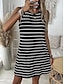 Per donna Mini Abito Abito a trapezio Abito Estivo Abito a spalle scoperte Vacanza Casual Quotidiano Spiaggia Ferie Vestibilità regolare Grafico Geometrico A righe Senza Maniche Collo a U Nero Estate