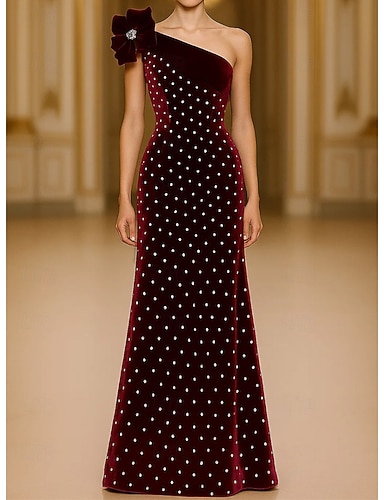 Tubino Colonna Lunghezza al pavimento Abiti da Ballo Abito da Sera Da principessa Abito formale Elegante Scintillante Stile Celebrità Senza Maniche Monospalla Festa in giardino Matrimonio Velluto con