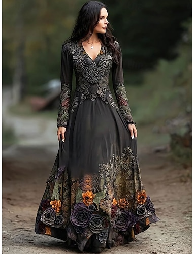 Linea ad A Lunghezza alla caviglia Abito Formale Abito da sera Abito da Sera Elegante Vintage Senza Maniche Scollo a V Formale Jacquard con Stampa floreale Blocco di Colore