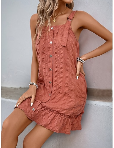 Per donna Mini Abito Abito Estivo Abito Sottoveste Casual Quotidiano Vestibilità comoda Semplice Senza Maniche Collo quadrato Rosso Verde Estate