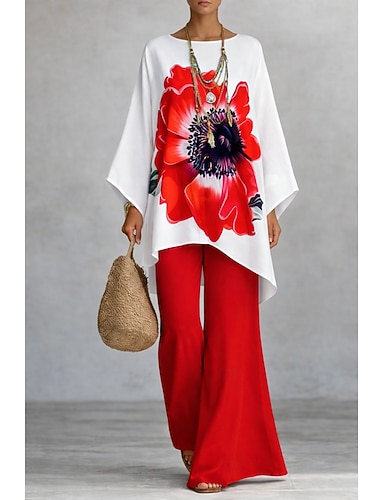 Per donna Set di Pantaloni Manica Lunga Girocollo Floreale Grafico Stampato Moda Streetwear Casuale Quotidiano All'aperto Blu Rosa Rosso Primavera & Estate Vestibilità comoda