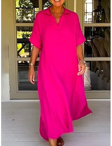 Per donna Abito Midi Finto cotone e lino Vestito Casual Elegante Moda Moderno All'aperto Vacanza Uscire Vestibilità comoda Semplice Manica Corta Colletto a Camicia Nero Bianco Rosso Viola Estate