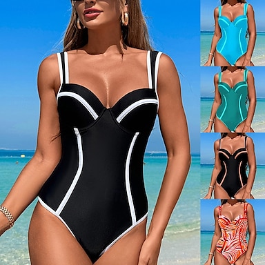 Per donna Costume Intero A V scollato Costumi da bagno Costumi da bagno Nero Bianco Traspirante Asciugatura rapida Leggero Senza maniche - Nuoto Surf Spiaggia Estate Primavera