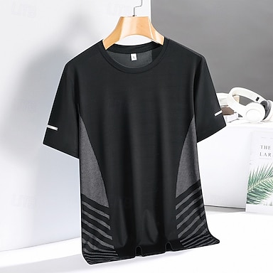 Per uomo Maglietta Manica Corta Girocollo Maglietta Maglietta muscolare Camicia a maniche corte Esterno Asciugatura Rapida Allenamento Morbido Estate Poliestere Patchwork Nero Bianco Blu Reale