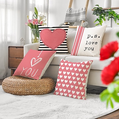 Set di federe con lettere a forma di cuore rosa, stampa fronte-retro, per cuscini decorativi di San Valentino, per soggiorno, divano, cuscini, arredamento romantico per la casa