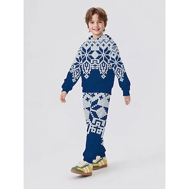 Natale Ragazzi 3D Grafico Fiocco di neve Set di Natale regalo di Natale Set Felpa con cappuccio & Pantaloni della tuta Manica Lunga Primavera Autunno Quotidiano Essenziale Casual Bambini Dai 4 anni