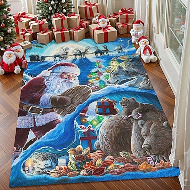 Tappeto Con Babbo Natale Del Bosco Natalizio Per Soggiorno E Camera Da Letto Tappeto Di Faux Cashmere Con Animali Festivi Tappeto D'Arte Invernale Morbido Antiscivolo Lavabile In Lavatrice