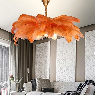 lampadario a sospensione a led splendido extra large 80cm 6 luci bianco bouquet di piume di struzzo lampada a sospensione romantico apparecchio di illuminazione montato per camera da letto ristorante