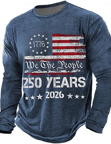 4 luglio 2026 250° Giorno della Memoria Maglietta a Maniche Lunghe Collo Tondo Stampa 3D Uomini Bandiera USA Casual Quotidiano