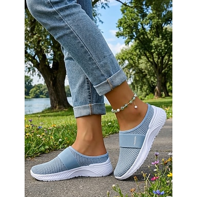 scarpe da ginnastica senza schienale in rete traspirante blu da donna, scarpe da passeggio leggere e casual per viaggi e fitness &abbigliamento quotidiano