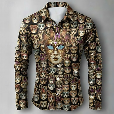 Martedì grasso Per uomo Maschera Colore abbagliante Carnevale Camicia in raso Camicie Camicia con bottoni Manica lunga Moda Casual Regalo Per eventi Festival Estate Primavera Collo ripiegabile