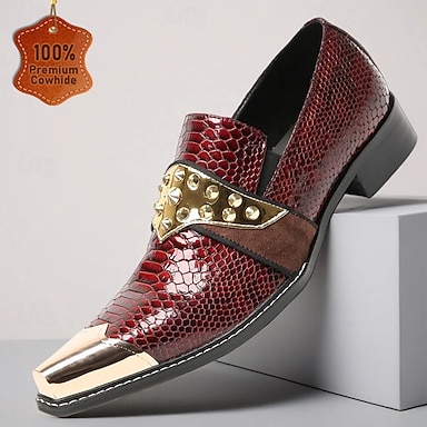 scarpe slip-on da uomo in pelle di serpente rossa con dettagli dorati: calzature formali di lusso per uomini eleganti, perfette per eventi serali e occasioni alla moda