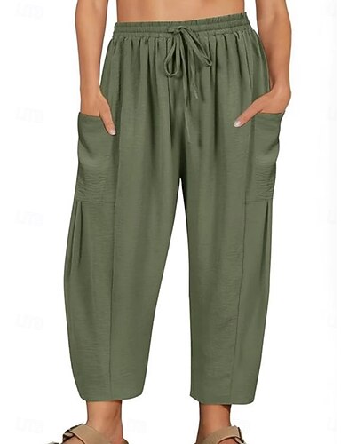 Per donna Finto cotone e lino Chinos Pantaloni Estivi Vacanza Moda Streetwear Lunghezza al polpaccio Vita Alta Semplice Tasca Fascia Elastica Comodo Comodità Morbido Elasticizzato All'aperto