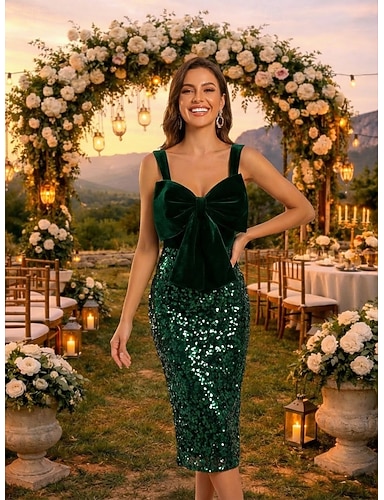 Abito tubino lunghezza sul pavimento con paillettes abiti formali abito da sera abiti da quinceanera elegante festa manica corta spalla scoperta festa serale matrimonio con perline paillettes spacco