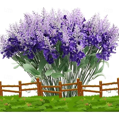 12 mazzi di fiori artificiali per la decorazione, fiori finti di lavanda romantica, piante finte per esterni, fiori di seta, arbusti resistenti ai raggi UV, piante verdi finte anti-sbiadimento per