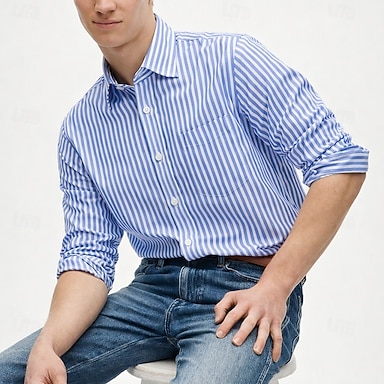 Per uomo Camicia Camicia elegante Camicia button-down Strisce verticali Casuale Quotidiano Blu Blu chiaro Nero Bianco Manica Lunga Collo ripiegato Tutte le stagioni Abbigliamento Patchwork
