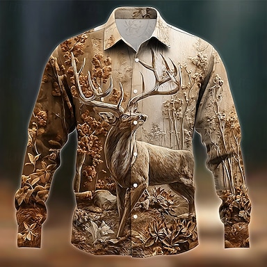 Per uomo Renna Natura foresta Camicia Camicia con Bottoni Manica Lunga Vintage Retrò All'aperto Campeggio & Escursionismo Caccia Primavera Autunno Collo ripiegato Stampa 3D camicie con colletto
