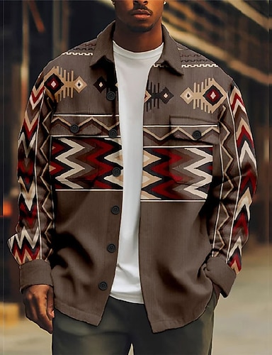 Per uomo Tribale Stampa Bandana Camicia Giacca da camicia Manica lunga Vintage Tribale Esterno Strada Casual / quotidiano Autunno inverno Collo ripiegabile Bottoni Tasche Stampa Marrone
