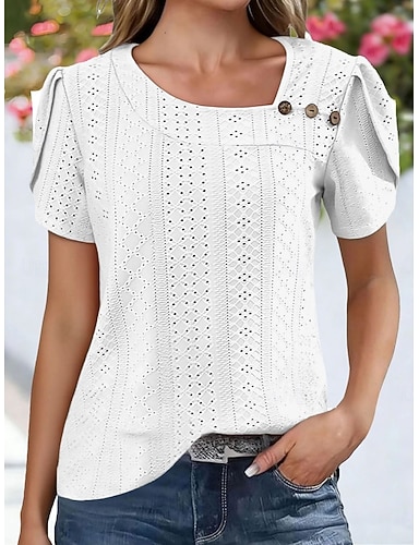 Per donna Camicia Camicia traforata Top traforato Blusa Traforato Bottoni Semplice Vintage Elegante Classico Manica Corta Asimmetrico Top Regolari Casuale Quotidiano Spiaggia Nero Bianco Rosa Vino