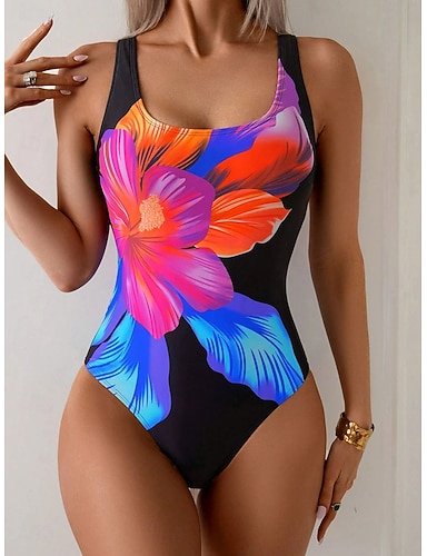 Costume da bagno intero da donna monokini snellente alto cut controllo della pancia alta vita slim senza schiena vacanza mare abbigliamento vintage floreale grafico collo a U senza maniche