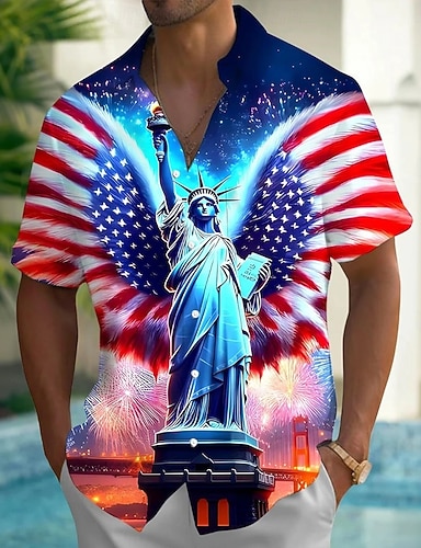 Per uomo 4 luglio, 250° anniversario degli Stati Uniti Statua della Libertà Bandiera degli Stati Uniti Camicia Camicia Estiva Camicia con Bottoni Manica Corta Patriotico All'aperto Ferie Estate