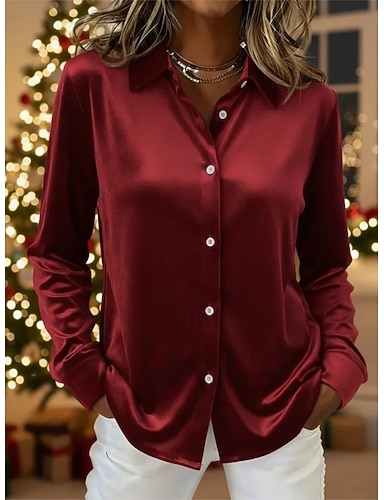 Natale Per donna Camicia in raso Camicia elegante Camicia con Bottoni Blusa Grafico Elegante Vintage Essenziale Manica Lunga Collo ripiegato Top Regolari Quotidiano Feste Ferie Blu Vino Verde Autunno